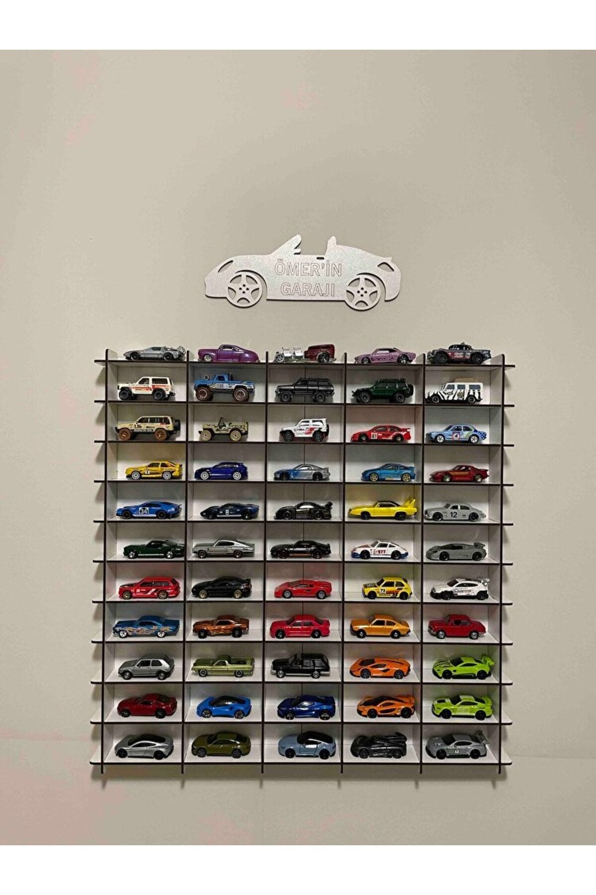 Beyaz Oyuncak Araba Rafı 50 Araç